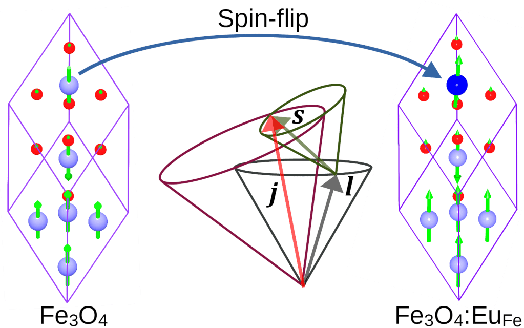 希土類元素(Eu)の添加によるマグネタイト(Fe3O4)の巨大飽和磁化創成と電気的手法によるスピン制御法のデザイン〜ポスト・コロナ時代の相対論的量子力学による計算機ナノマテリアルデザイン〜
